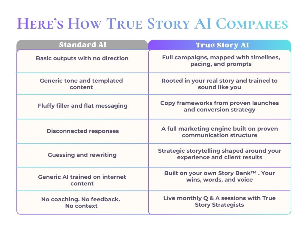 Get monthly access to new prompt styles, hooks, launch structures, and storytelling frameworks that reflect what’s working now — so you’re never stuck or outdated.